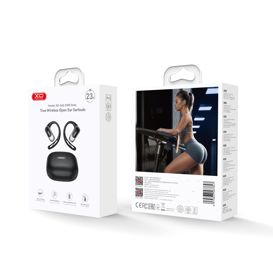 Los Auriculares XO G45 Sports están diseñados para ajustarse cómodamente a tus oídos mientras te acompañan en tus actividades diarias o entrenamientos intensos. Con un diseño ergonómico y moderno, ofrecen estabilidad incluso en movimiento.