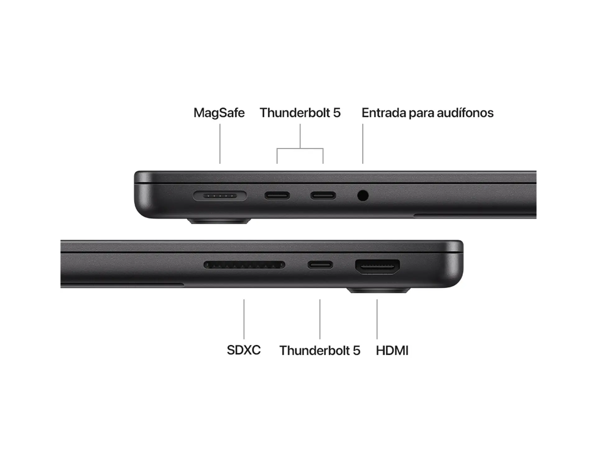 La MacBook Pro es la laptop perfecta para los proyectos más desafiantes. El chip M5 se creó específicamente para impulsar la IA en el dispositivo y ofrece una velocidad de otra dimensión en los modelos de 14 pulgadas.Consultar los avisos legales. Los chips M4 Pro y M4 Max tienen poderosas capacidades de IA y un rendimiento aún mayor. Y como trae una espectacular pantalla Liquid Retina XDR y brinda hasta 24 horas de batería,