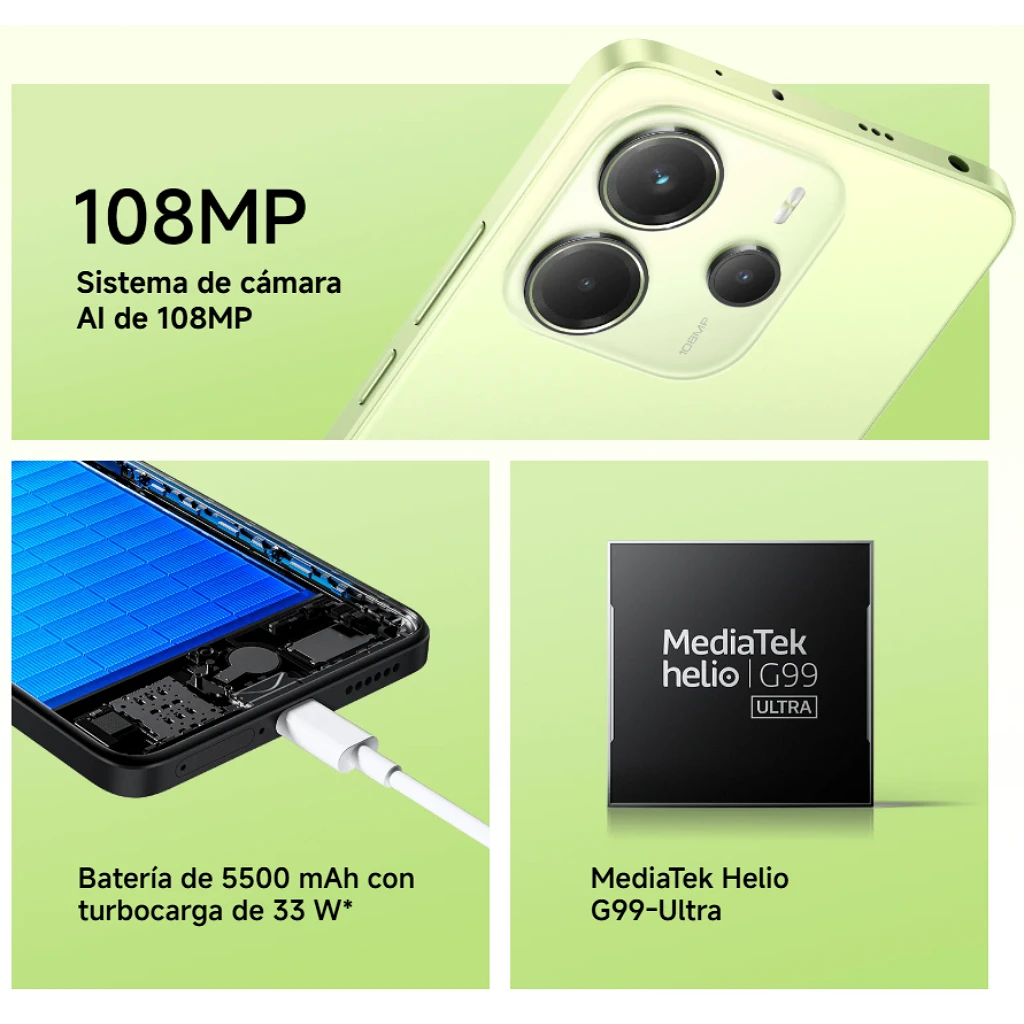 Equipado un procesador Helio G99 y una pantalla AMOLED de 6,67″ con tasa de actualización de hasta 120 Hz. Su cámara principal de 108 MP captura imágenes nítidas y detalladas, mientras que su batería de 5500 mAh con carga rápida de 33 W asegura un uso prolongado. Con resistencia IP54, altavoces duales Dolby Atmos® y sistema operativo Xiaomi HyperOS, está preparado para cualquier desafío.